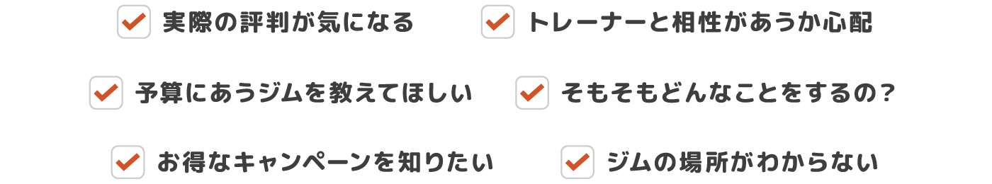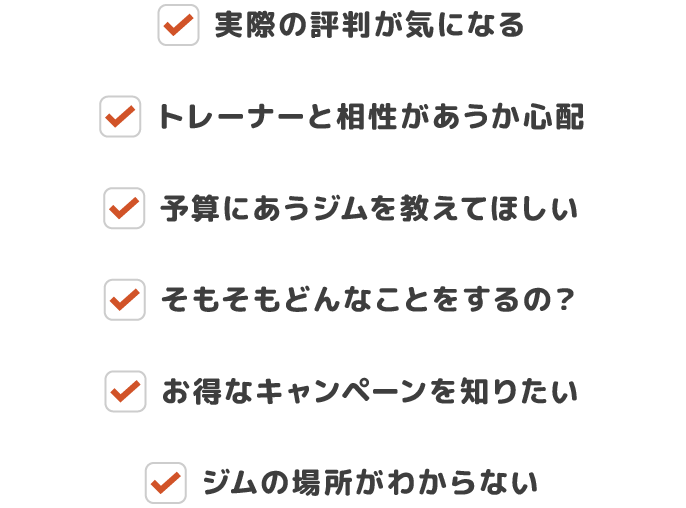 お客様からの評判が悪かったりクレームが多いパーソナルジムとは当社から契約を解除できる仕組みがあります。ですので当社からご紹介するパーソナルジムは優良なトレーナーさんばかりですので、ご安心ください!